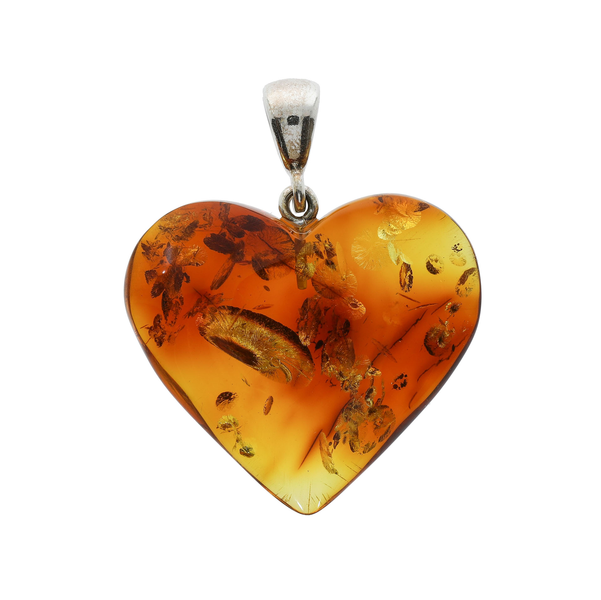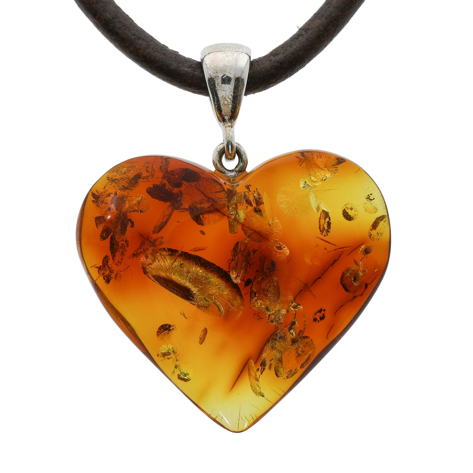 Der  findes ikke en anden som denne ravhjerte, den er helt unik, med strukturen fra det 40 millioner år gamle træ på bagsiden.