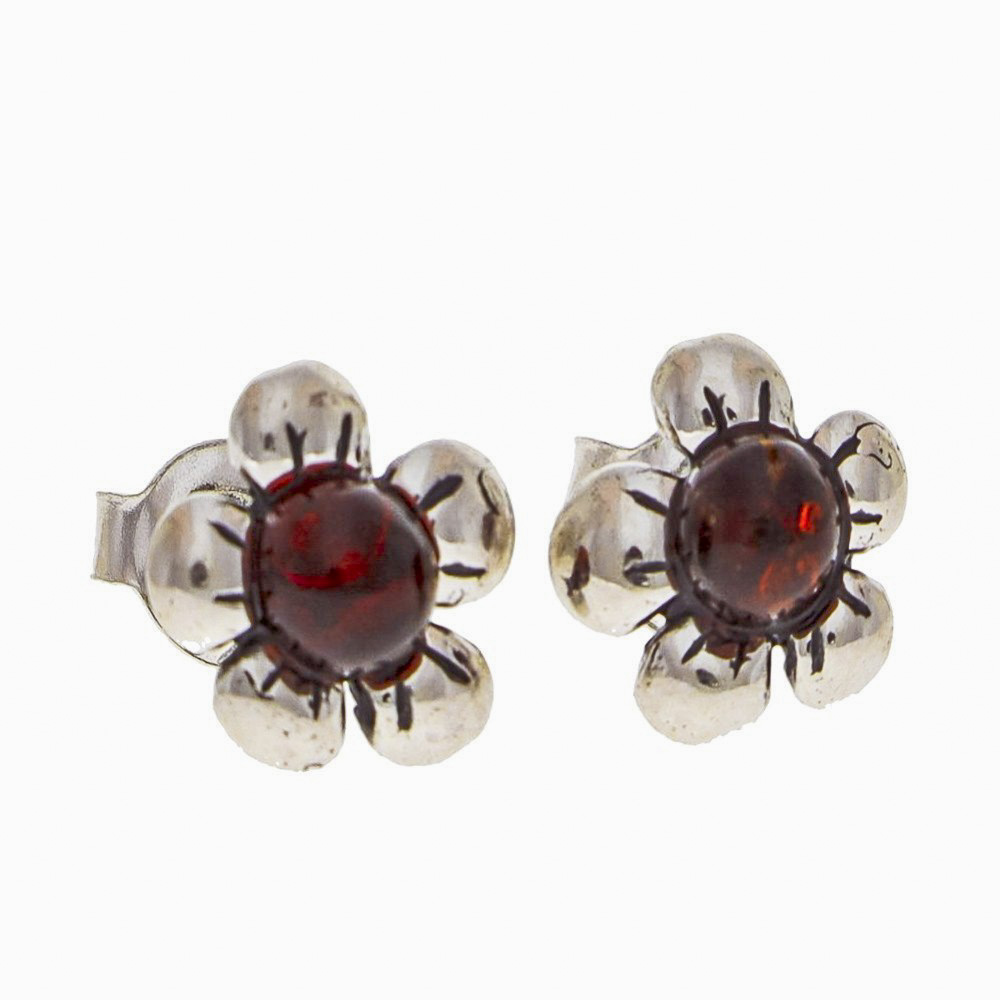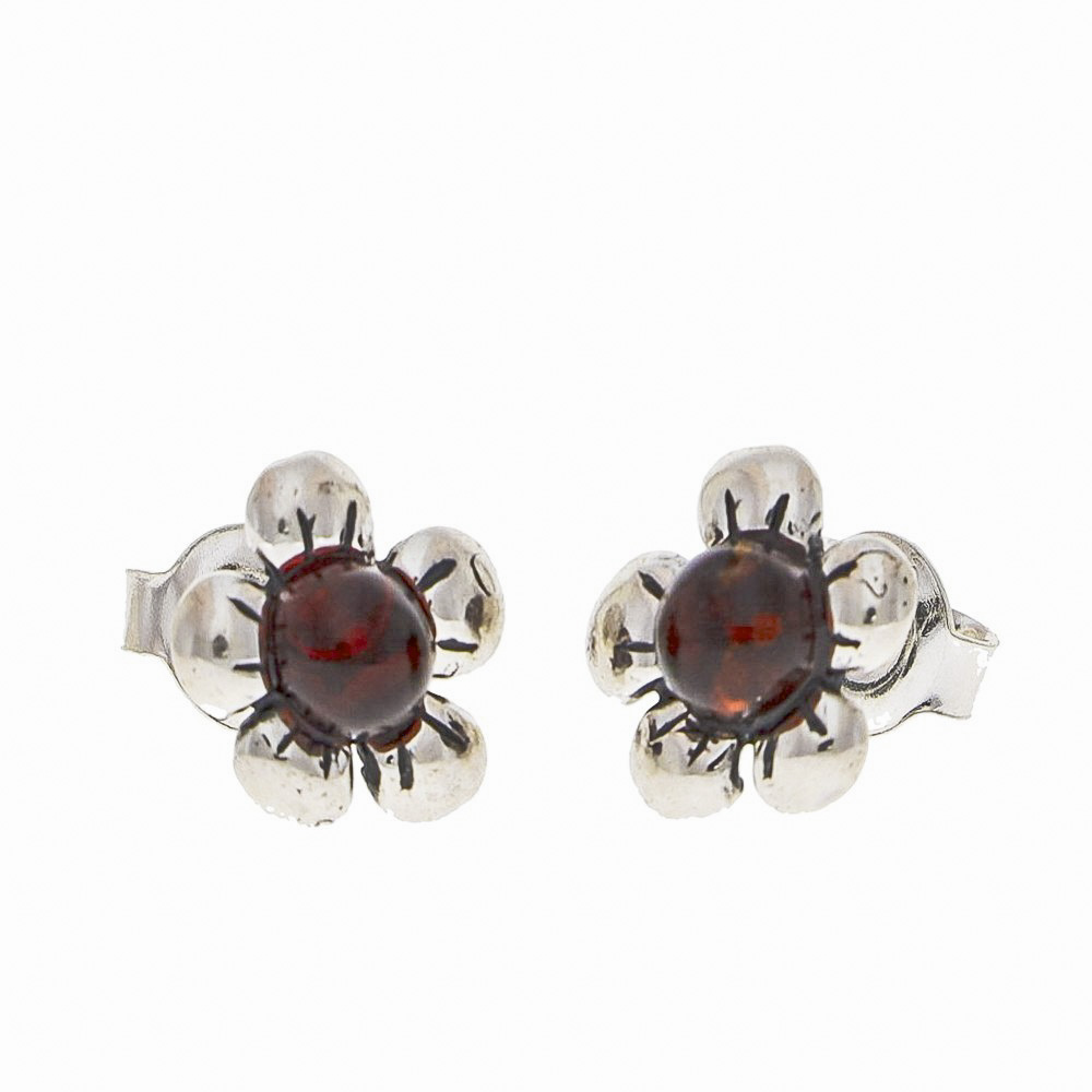 Blomster ørestikker af ægtekirsebærrød rav og Sterling sølv . 925