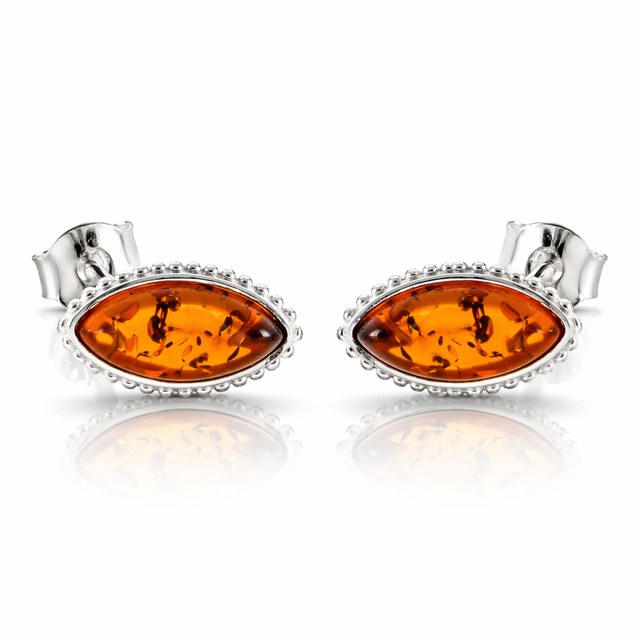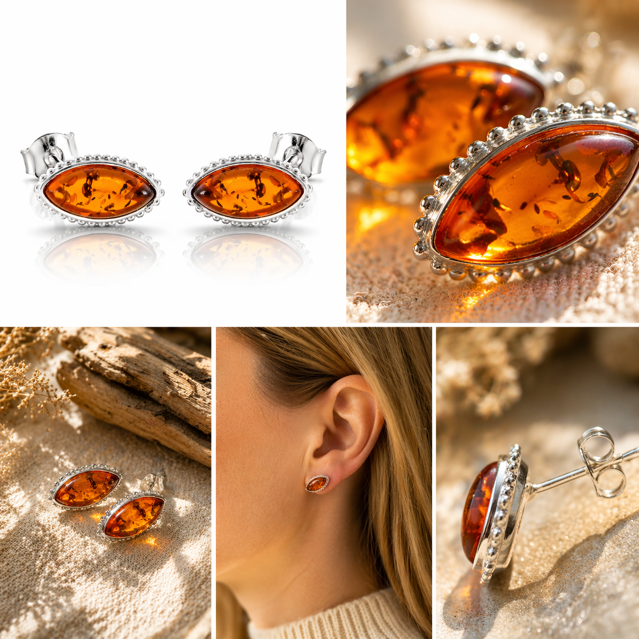 Øreringe af ægte rav med sølv