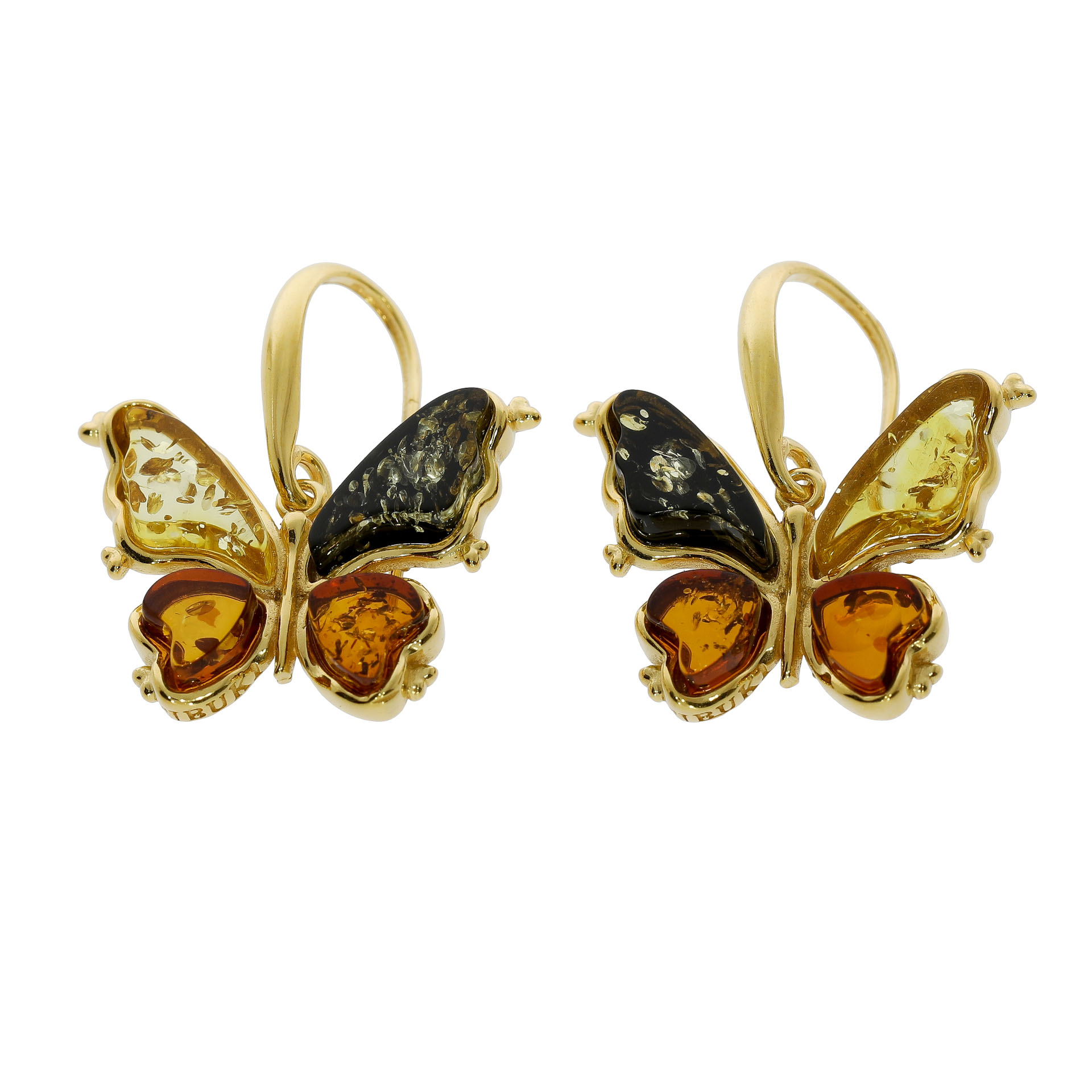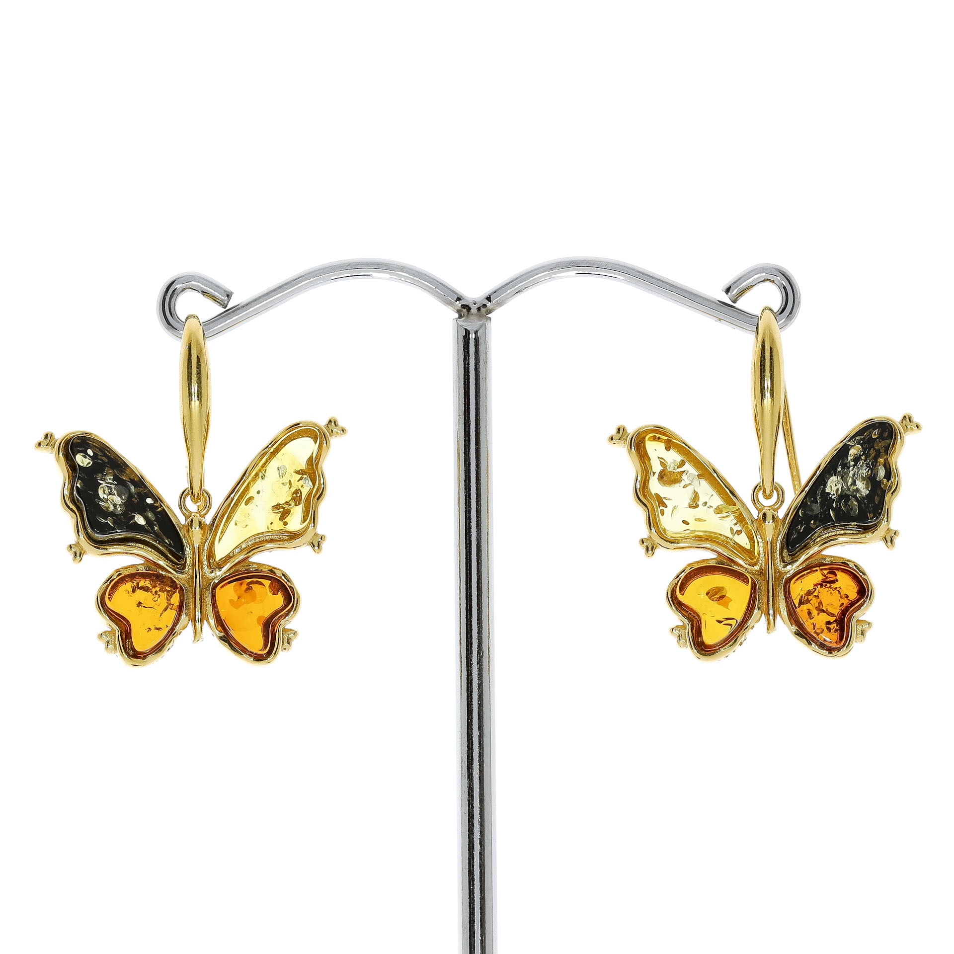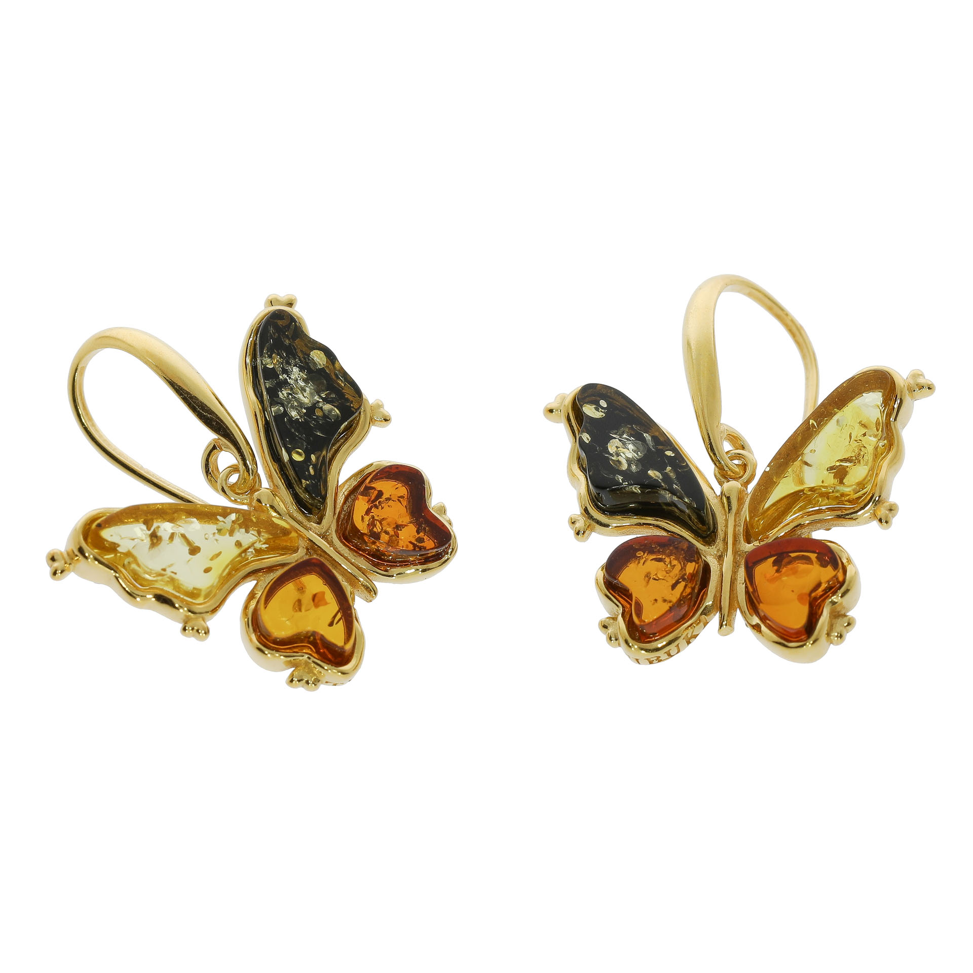 Sommerfugle øreringe forgyldte af ægte rav