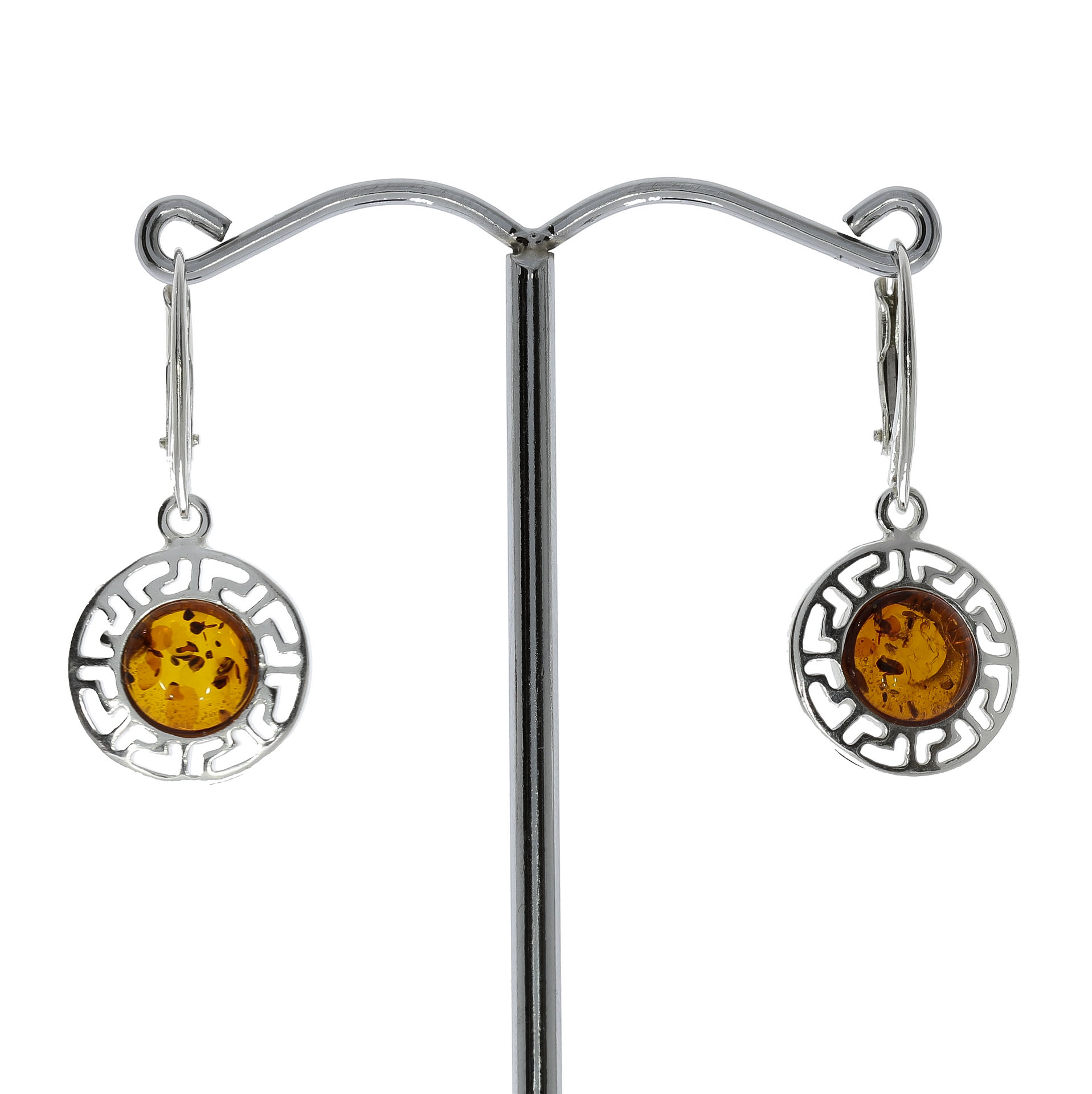 Græsk Stil Hængende rav og sølv øreringe