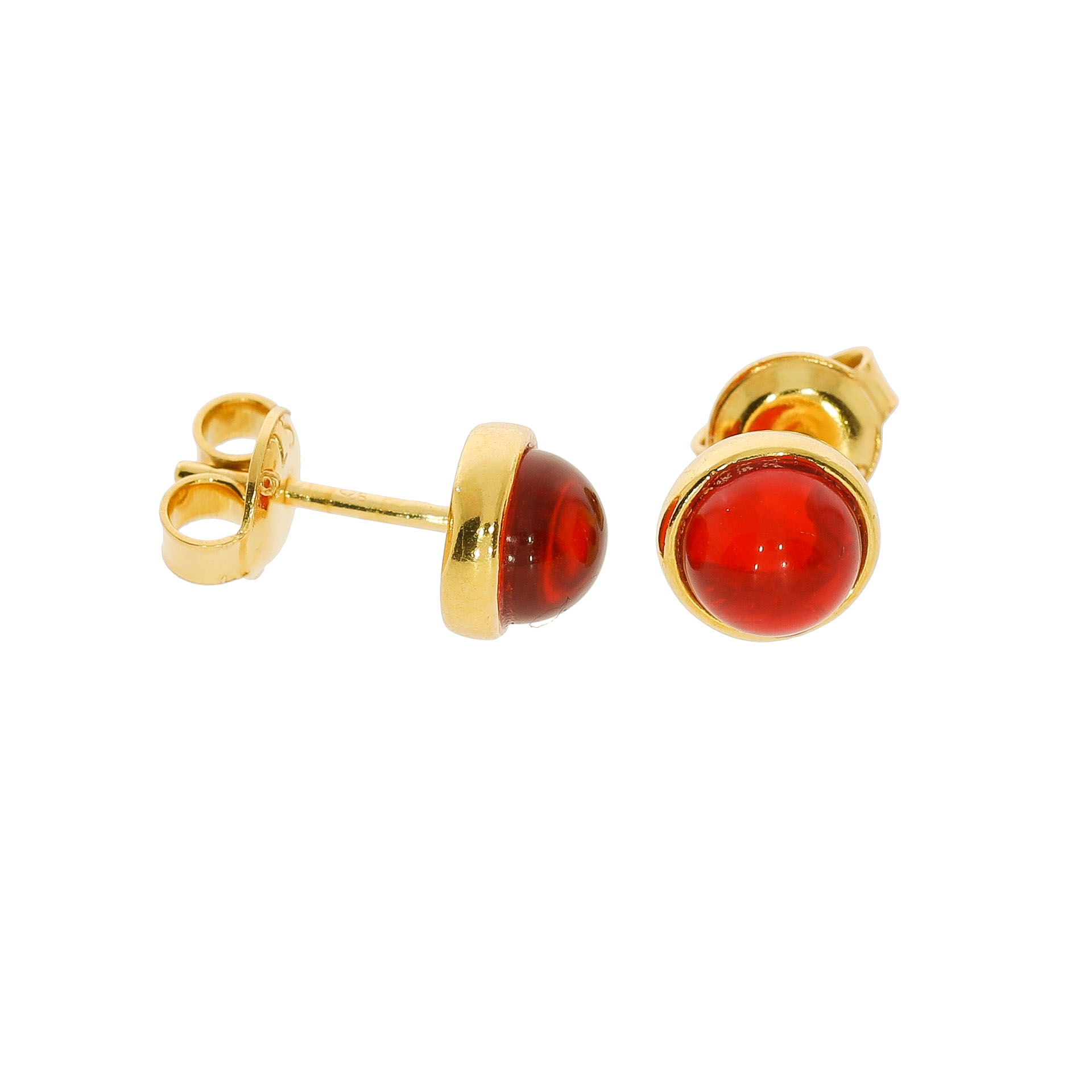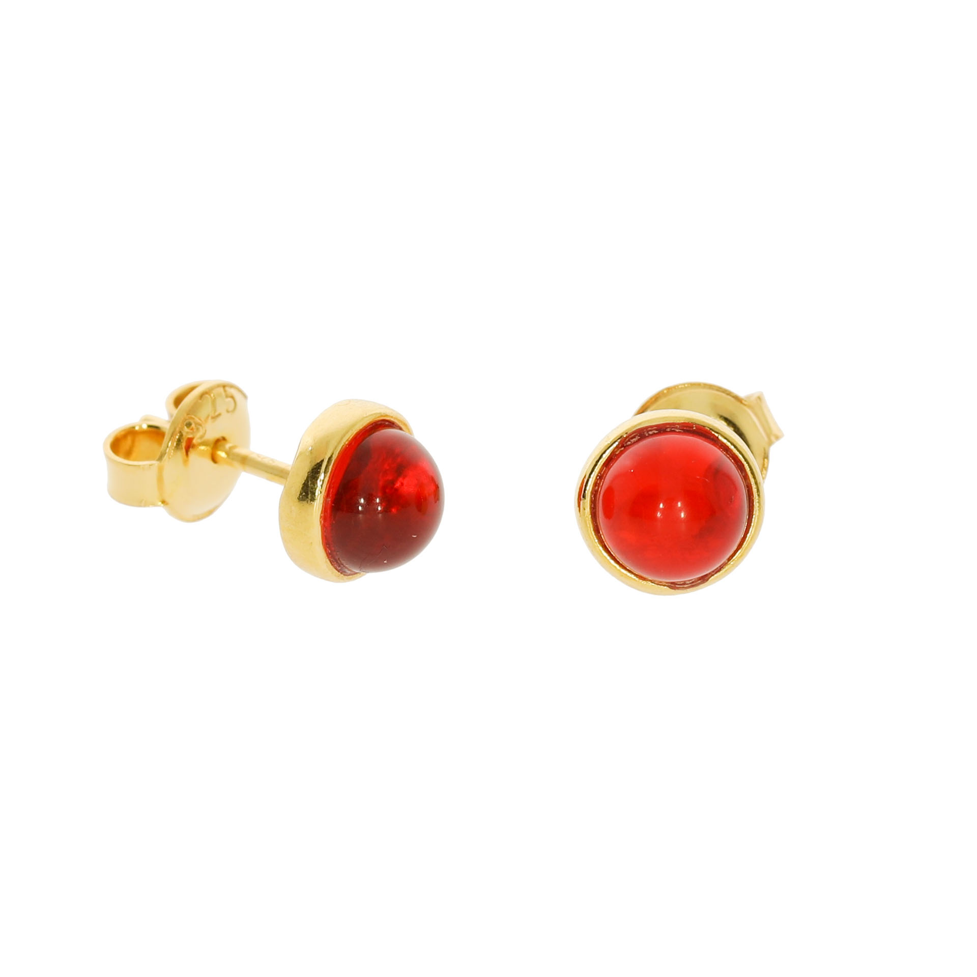 Rød Runde Rav Ørestikker I Forgyldt Sølv