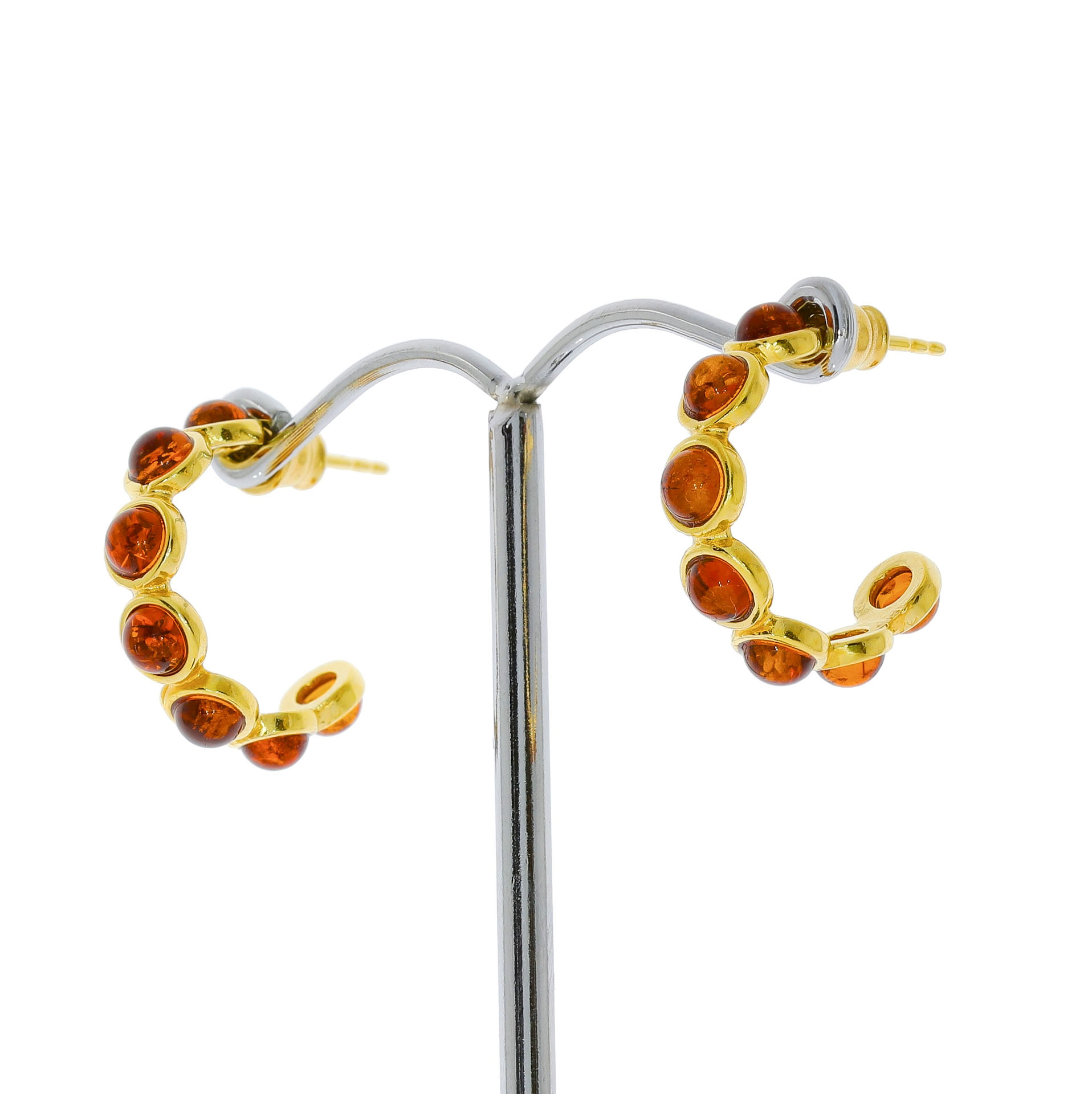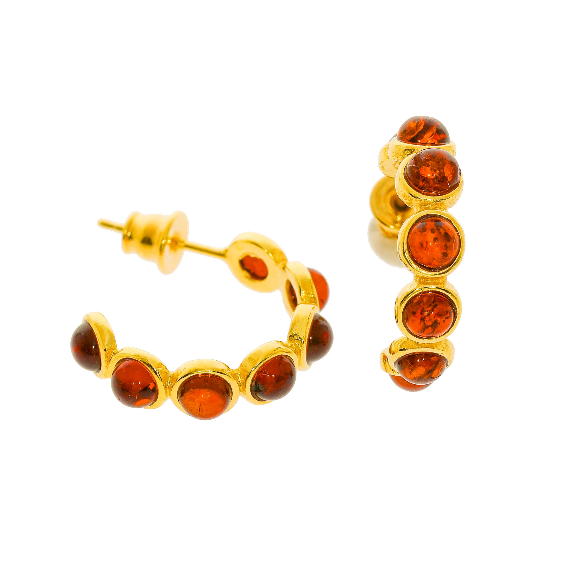 Forgyldte Creoler - Kreoler Med Ægte Rav i brun farve
