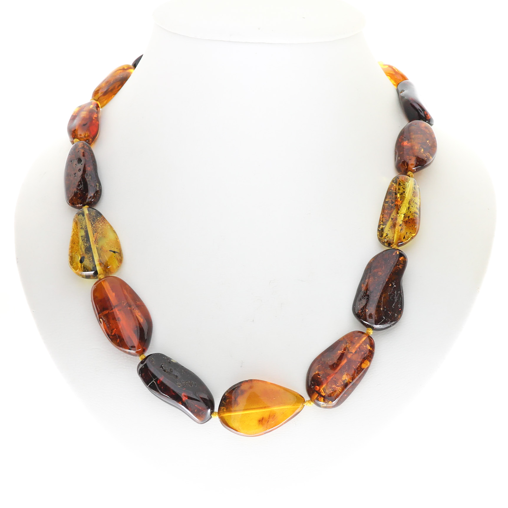 Kæden er håndlavet af de flotteste ravstykker som hver især har en unik struktur og farve