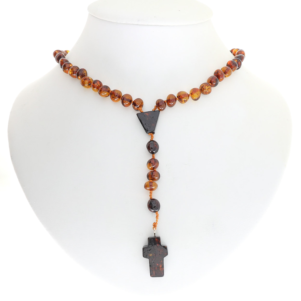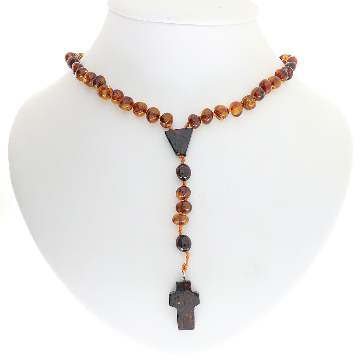 Rosenkrans lavet af naturlige ravperler i bruun farve