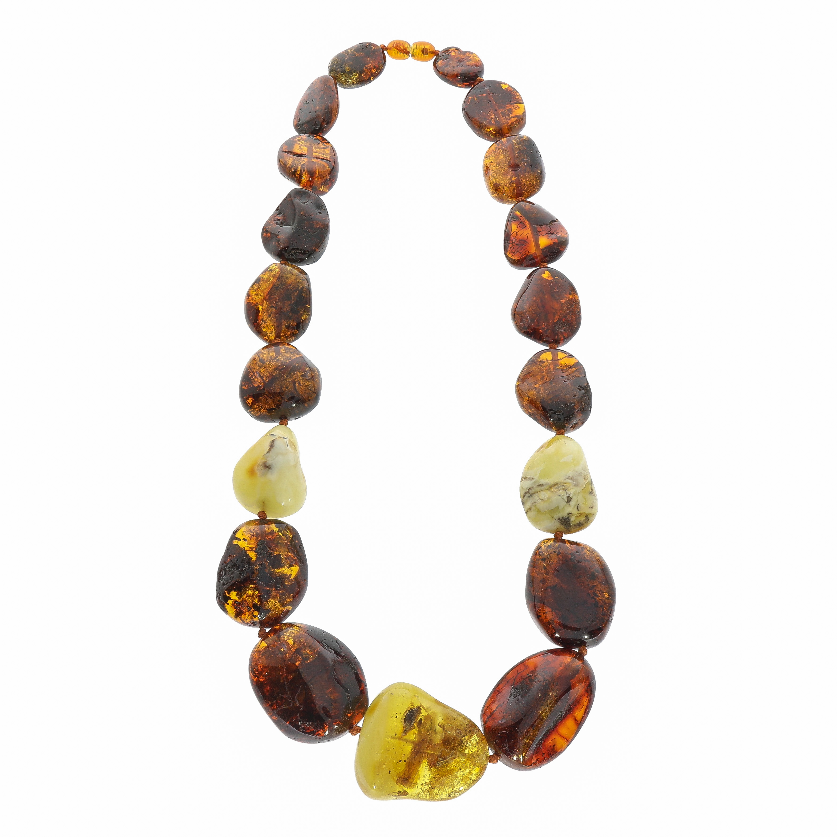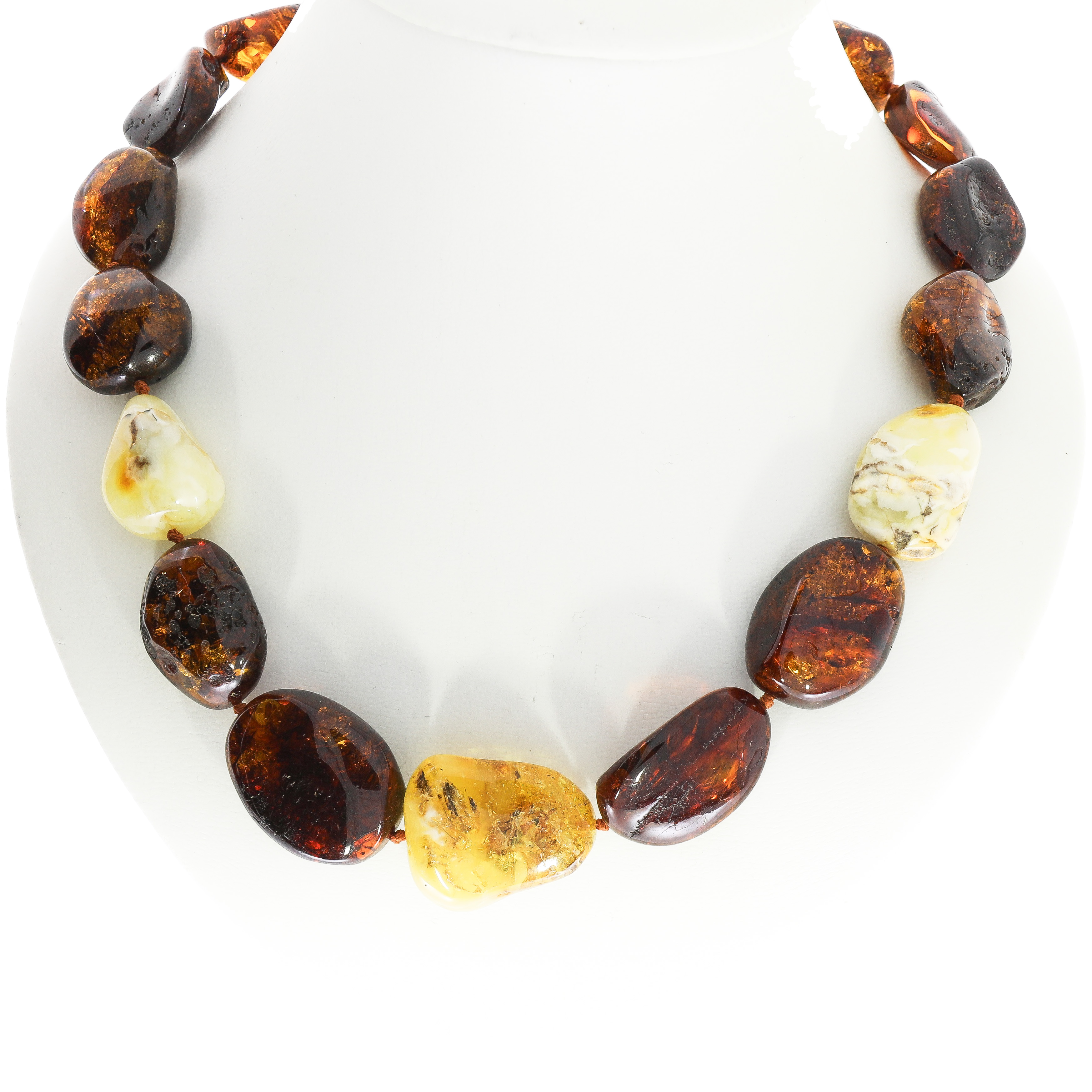 Naturlige stykker af mælkeagtig rav med absolut unik struktur og farvenuancer, skabt af naturen for 60 millioner år siden. En ægte sjældenhed og skønhed fra fortiden. Farven på ravhalskæder har smukke og unikke orange farvenuancer.
