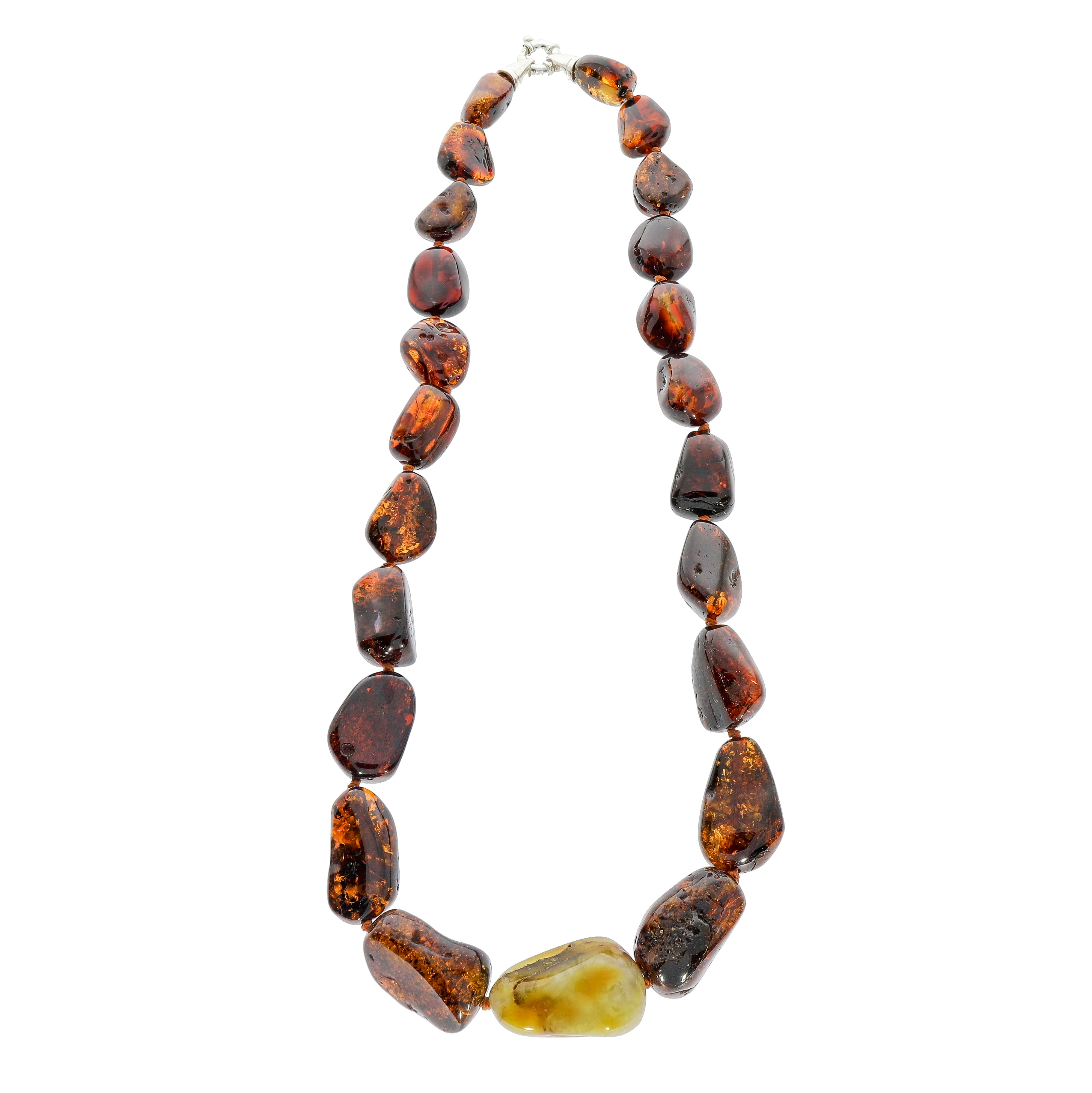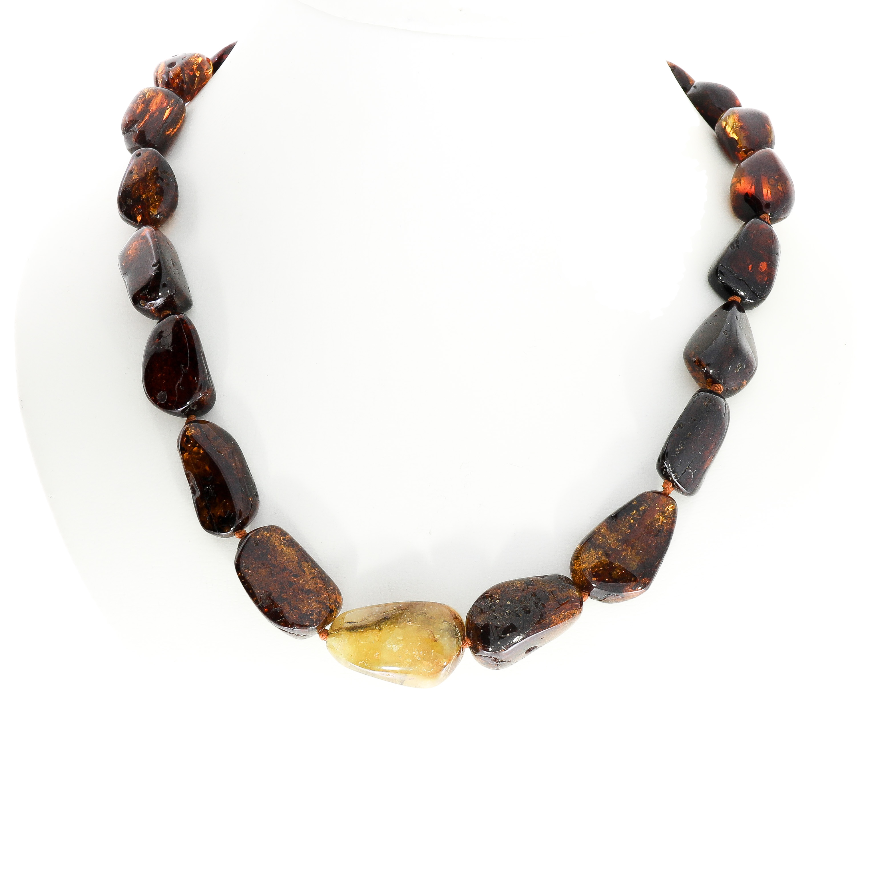 Naturlige stykker af mælkeagtig rav med absolut unik struktur og farvenuancer, skabt af naturen for 60 millioner år siden. En ægte sjældenhed og skønhed fra fortiden. Farven på ravhalskæder har smukke og unikke orange farvenuancer.