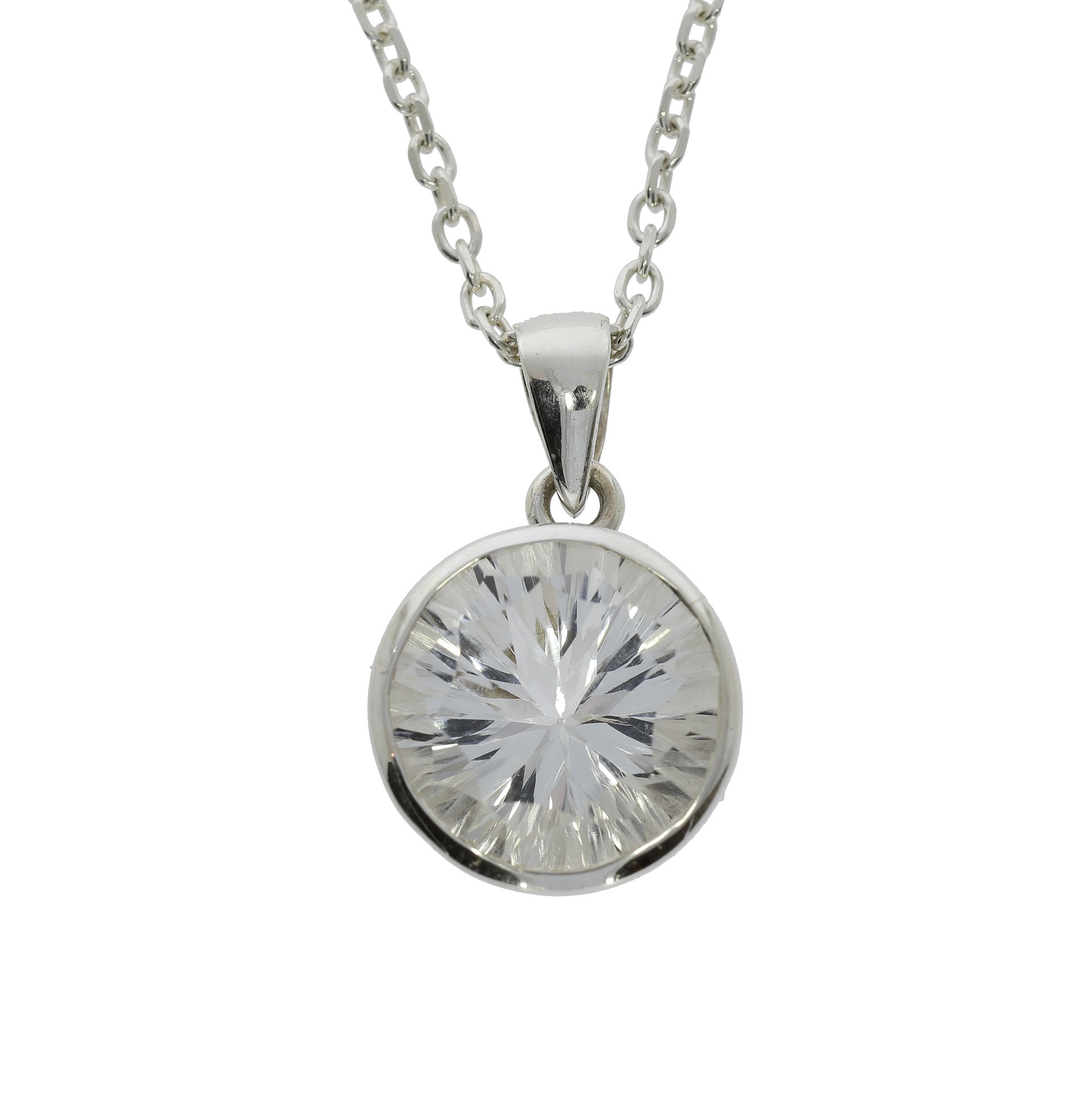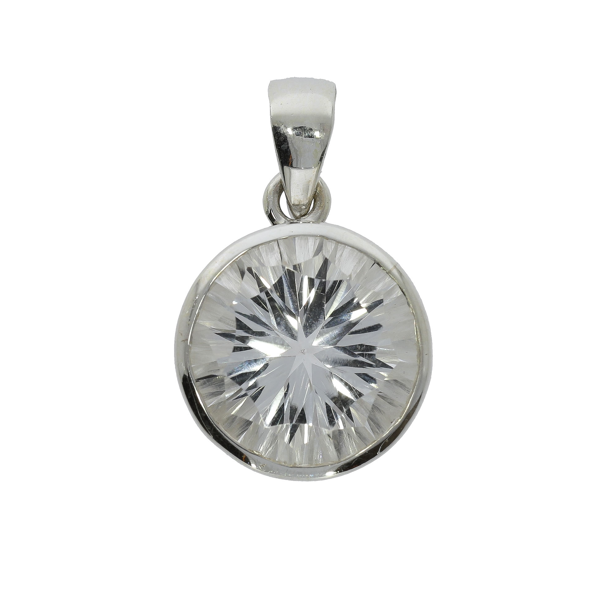 Denne smukke og unikke ædelstensvedhæng er håndlavet af det højeste kvalitets Bjergkrystal isat i ægte sølv