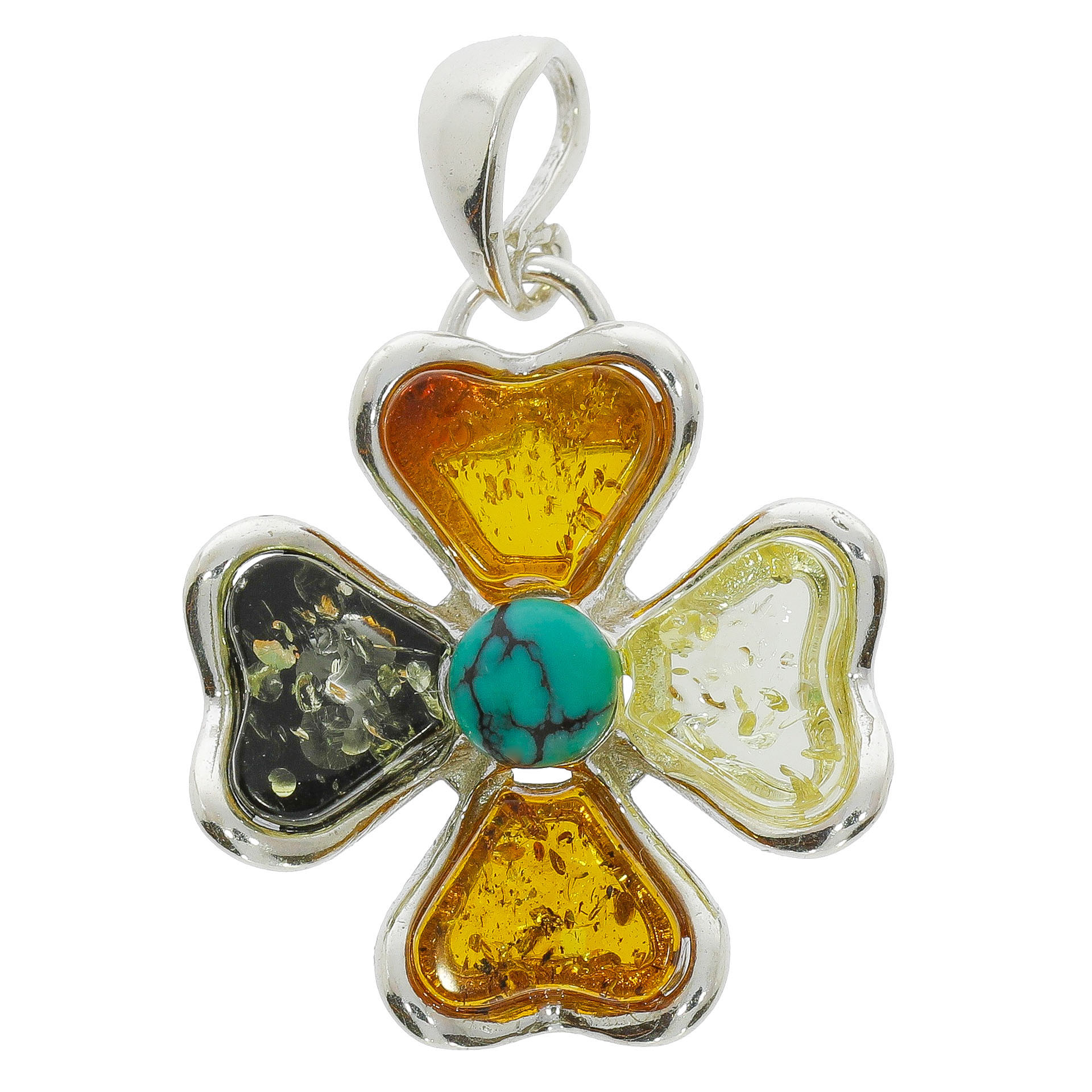 Nordlys Korset – Vedhæng med Rav, Turkis & 925 Sølv