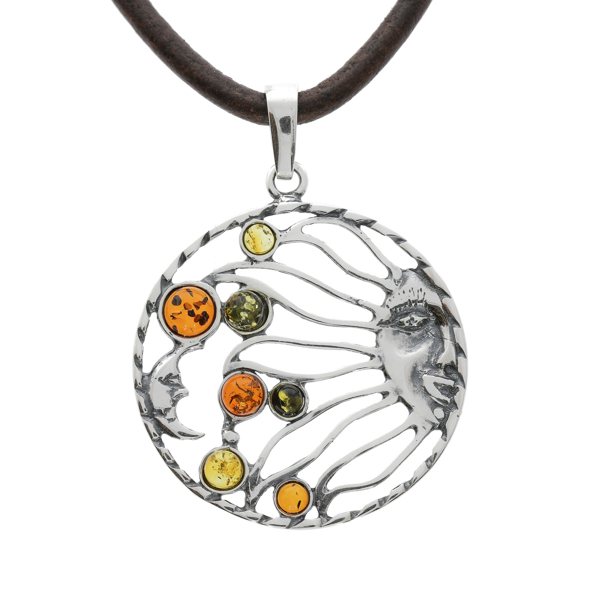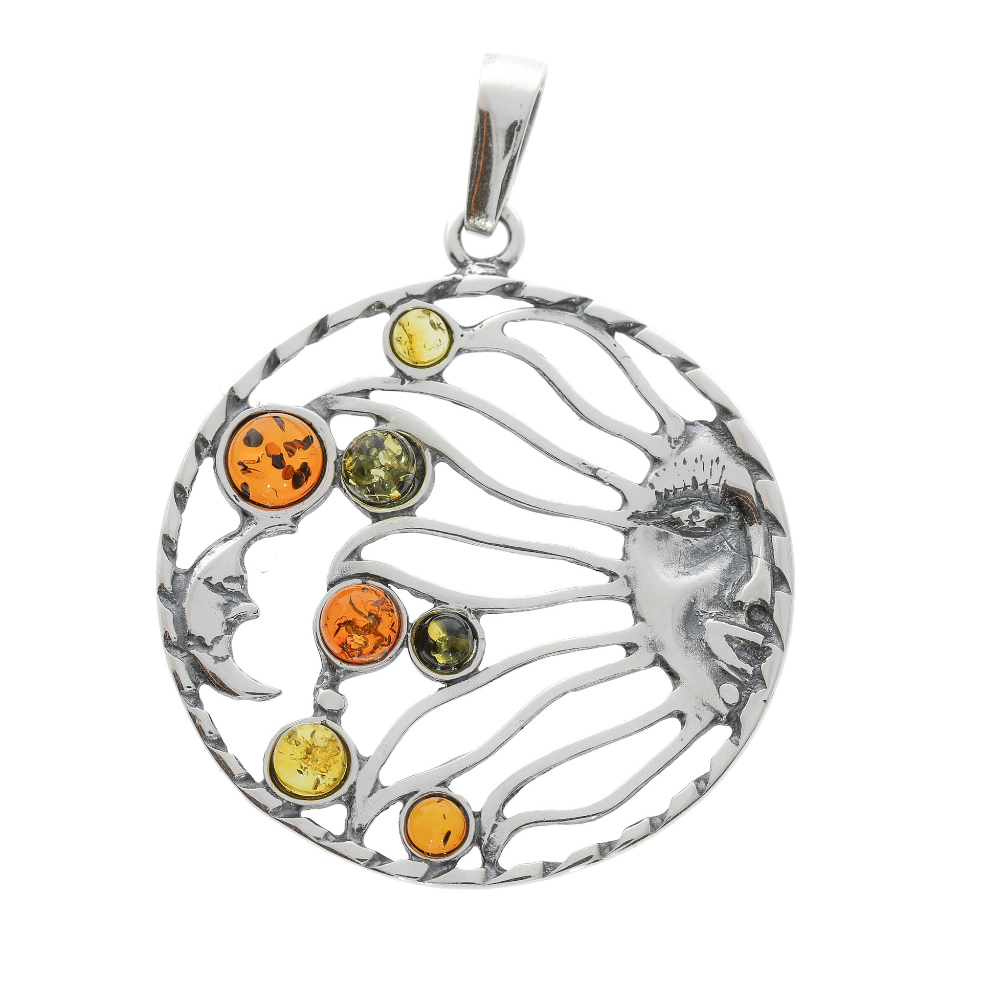 Himmelsk Sol & Måne Vedhæng i Sterling Sølv med Flerfarvet Baltisk Rav