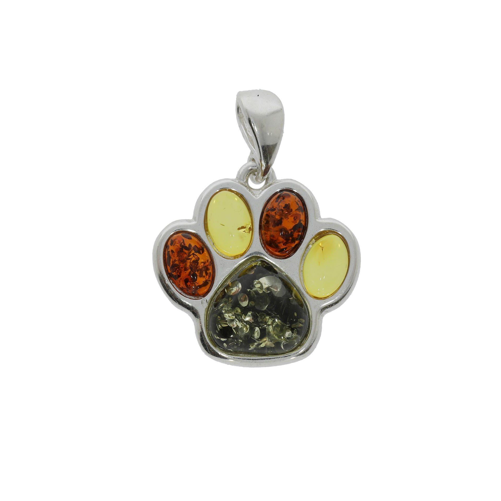 Hundepote Vedhæng I 925 Sterling Sølv Og Rav