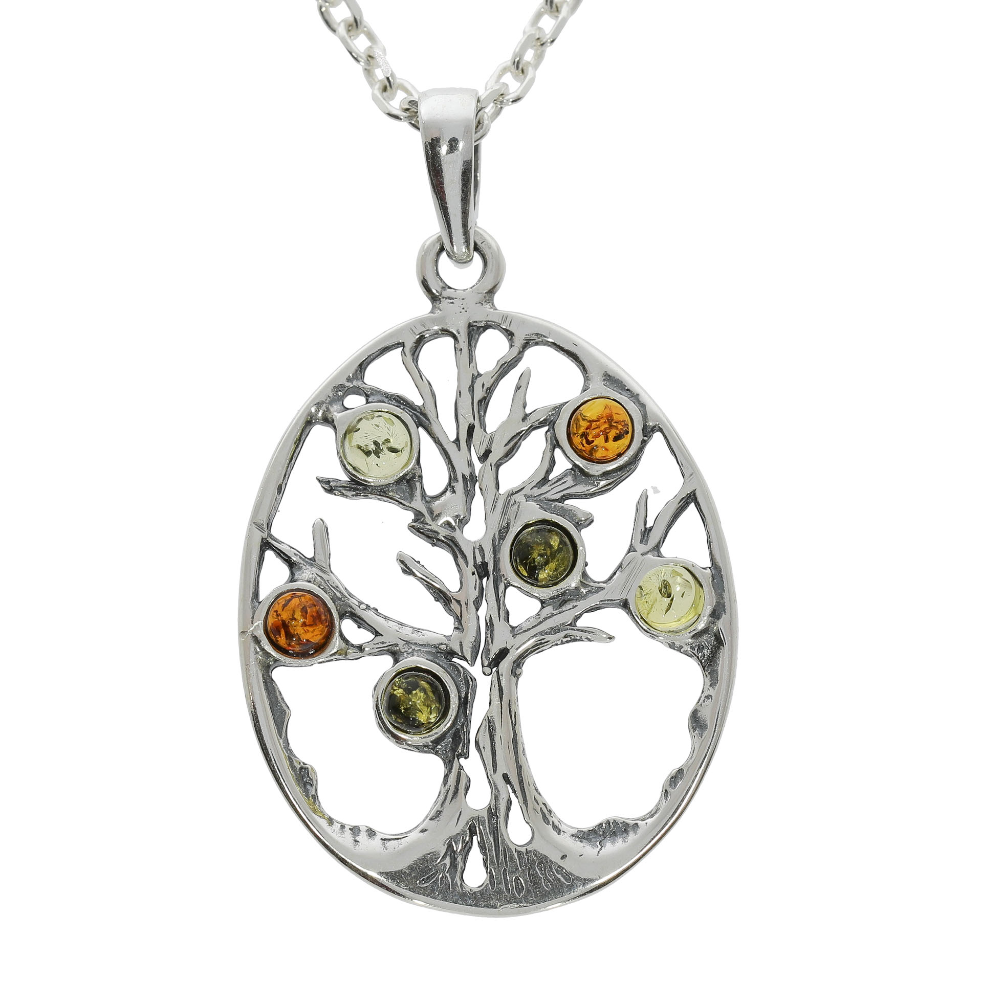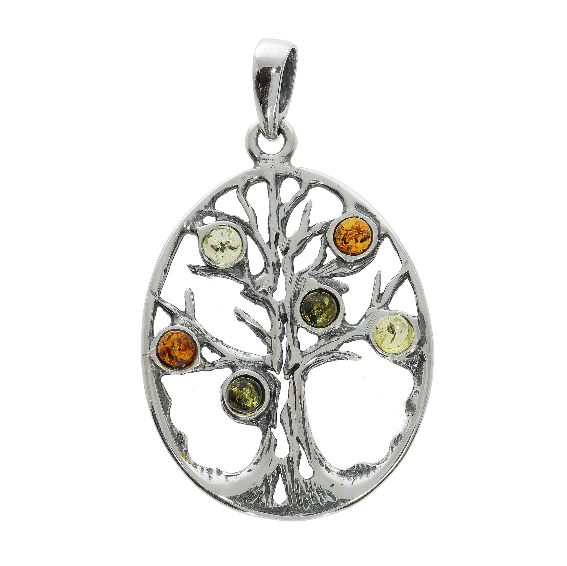 Sterling Sølv Livets Træ vedhæng med flerfarvede ravblade