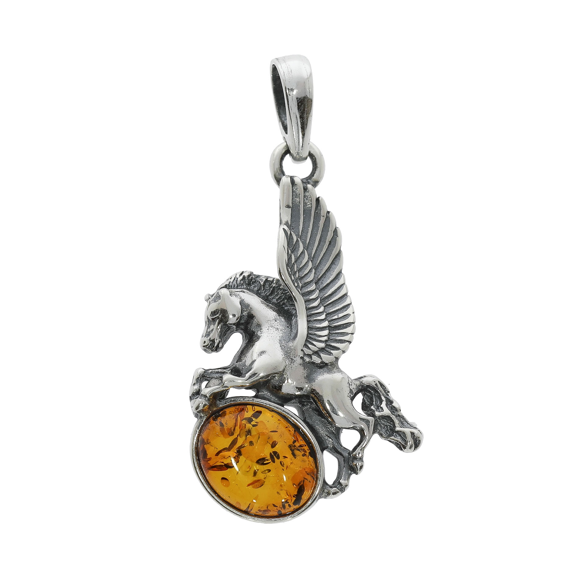 Pegasus vinget hest vedhæng i 925 sterlingsølv med Nordhavs Rav