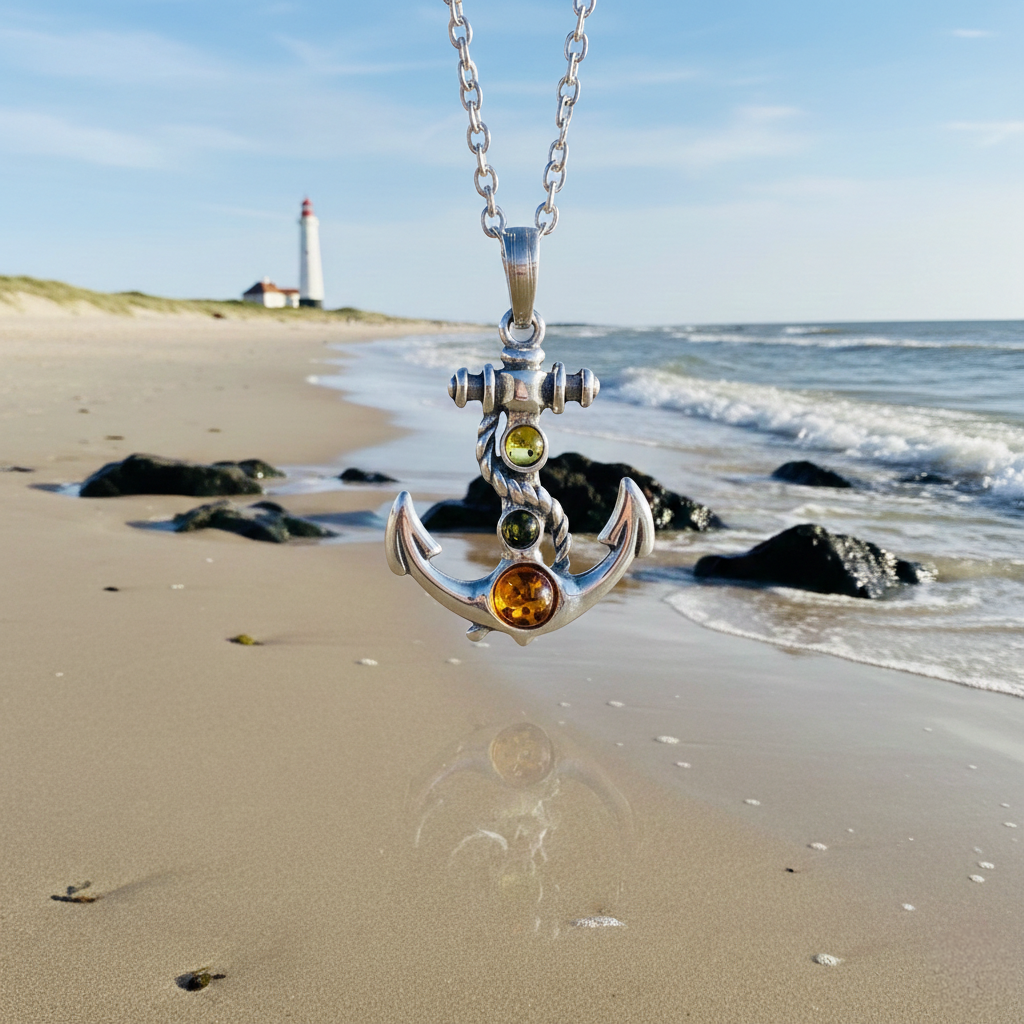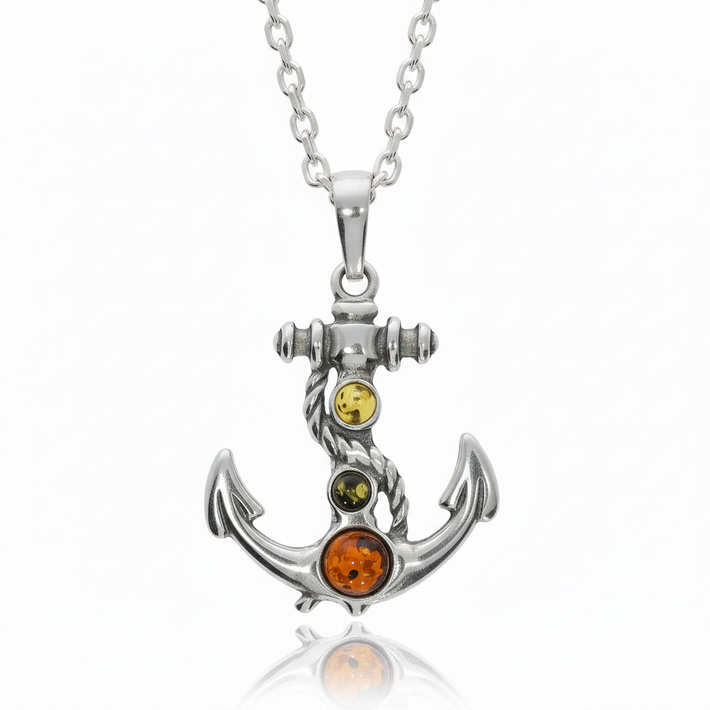 Sterlingsølv anker vedhæng med flerfarvet rav | Nautisk smykker til mænd og kvinder | .925 sølv sømandens amulet