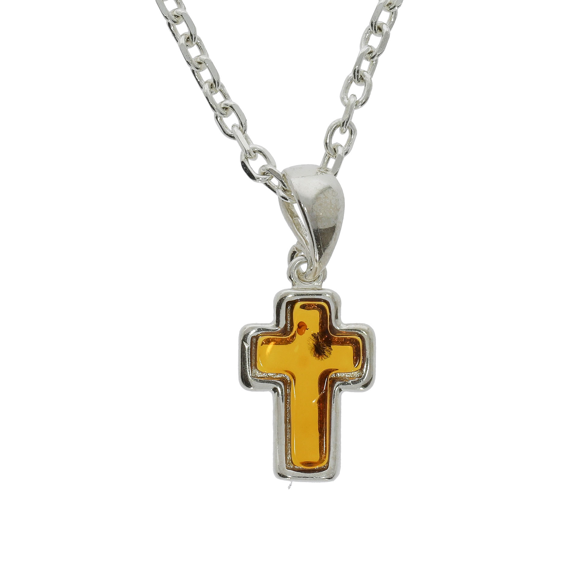 Rav Kors Vedhæng i Sølv | Ægte Rav | Den lille Ravbutik