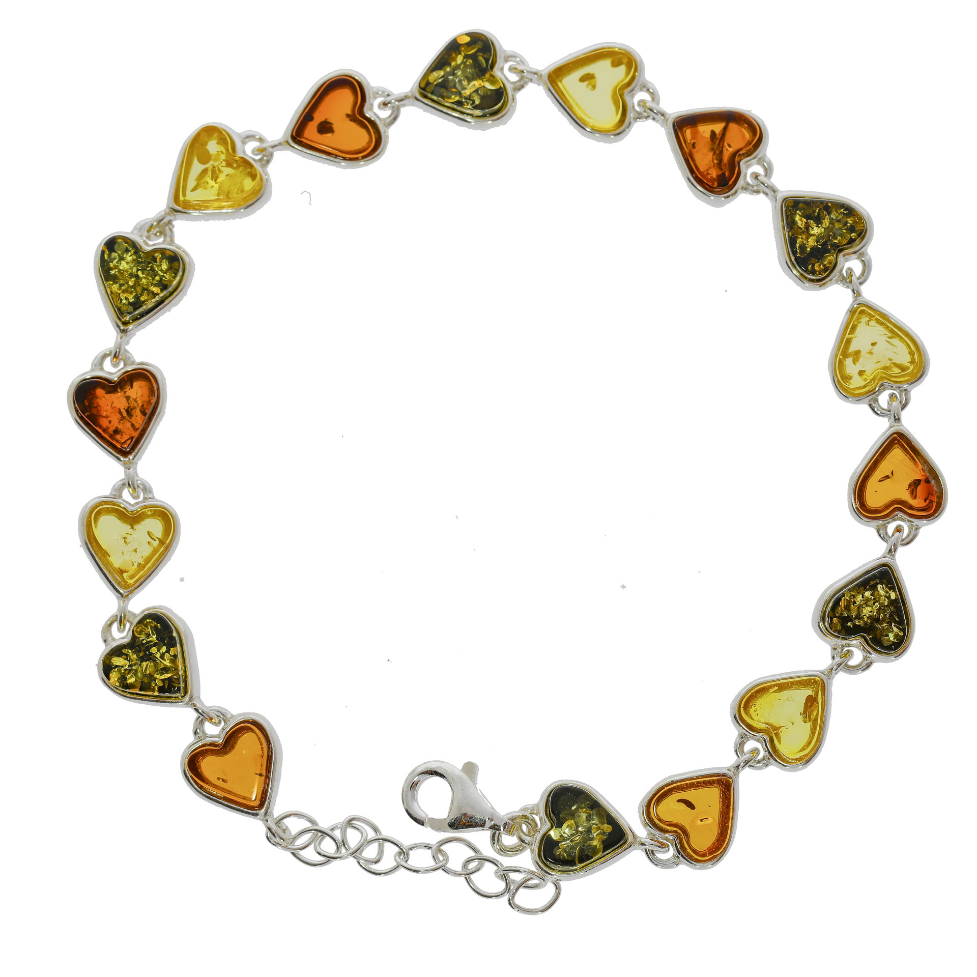 Den perfekte gave til dine kære - Armbåndet er ikke stort, meget elegant sølv og rav i tre farver hjerter.